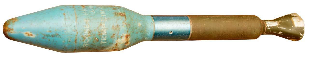 [pg 132] "The launcher length of barrer, fourteen inches, evolved as the length to make it unlikely that the gunner would accidentally get his fingers in front of the muzzle on firing. The barrel length required for interior ballistics was only a few inches, as the pressure dropped quite rapidly. Peak pressure on the low side is only three thousand pounds per square inch, compared to thirty thousand pounds per square inch in the high pressure chamber."
