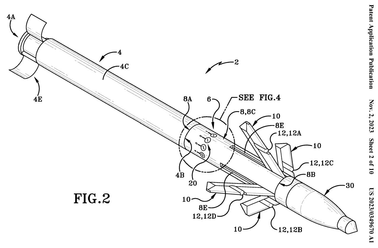 20200070977 Compact unmanned aerial system, Hao Kang, John W. Gerdes, III, 2020-03-05, - "...An unmanned aerial system capable of being launched from a grenade launcher..."Martin-Electronics Inc - Innovative low, medium & high velocity rounds including the HUNTIR video camera