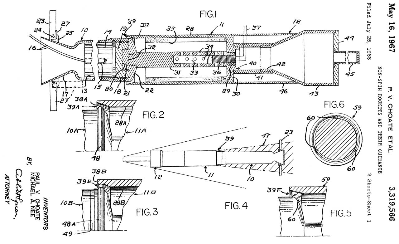3319566 Non-spin rockets and their guidance, Paul V Choate, Michael A Nee, Norris Industries, 1967-05-16, -