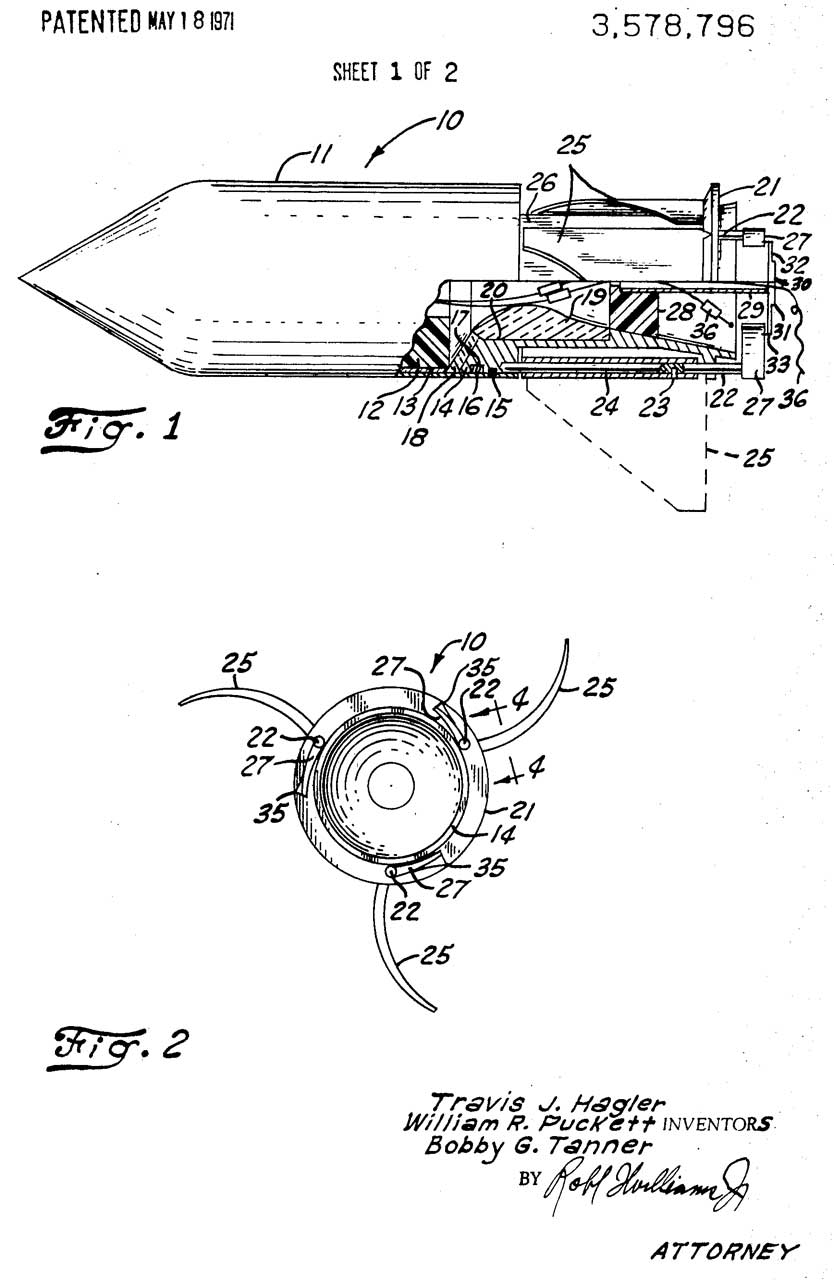 3578796 Spinning and stabilizing system for solid propellant rocket or missiles, Travis J Hagler, William R Puckett, Bobby G Tanner, Thiokol Corp, 1971-05-18, - Hydra 70