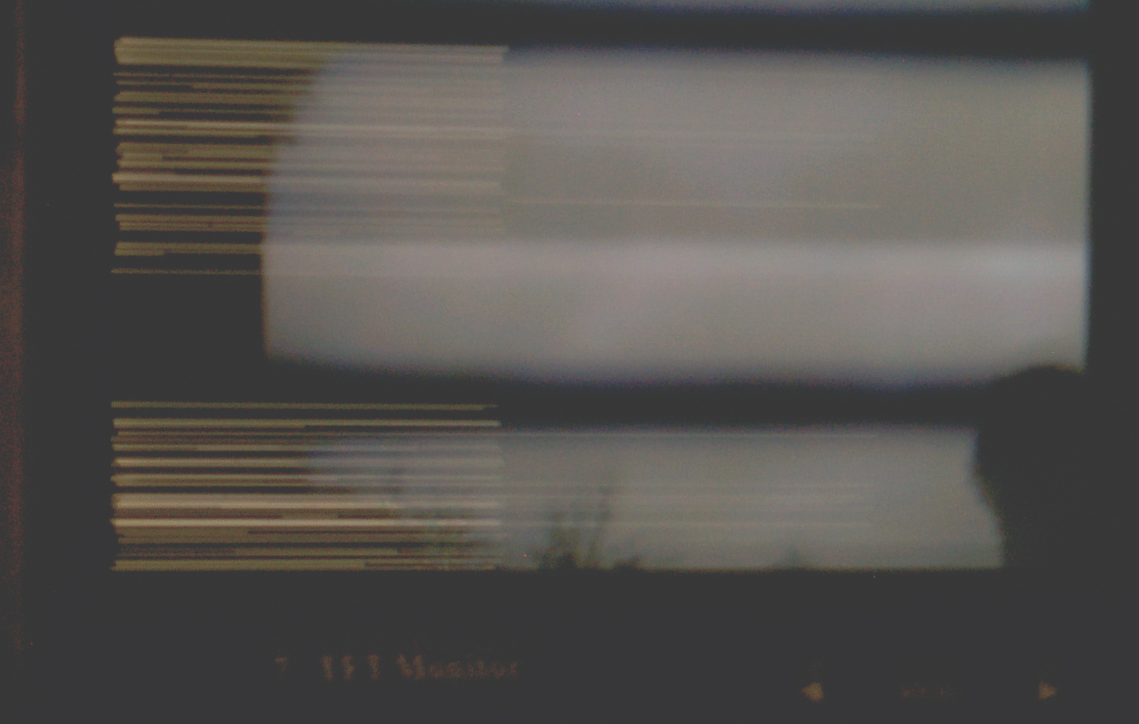 The monitor is showing thin white lines to the left and vertical sync