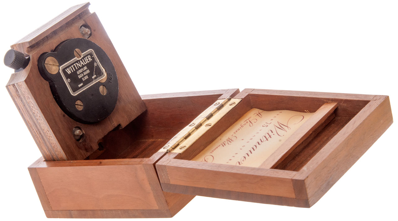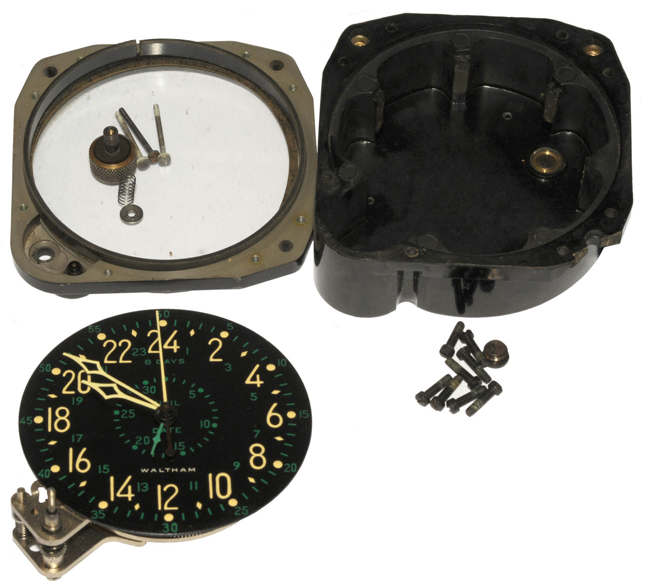 This was sold on eBay as an A11, but all of them I've seen have the set/wind stem sticking straight out. The dial is stamped A.F. U.S. Army, Type A-11. Maybe this was a prototype or a later version of the A-11? This type of stem that sticks out at the 45 degree angle is what I remember as applicable to clocks used in time and distance rallies. If this was surface mounted on a wooden instrument panel the stem would be above the surface and could be wound/set.