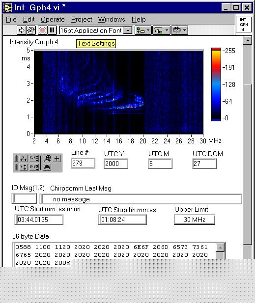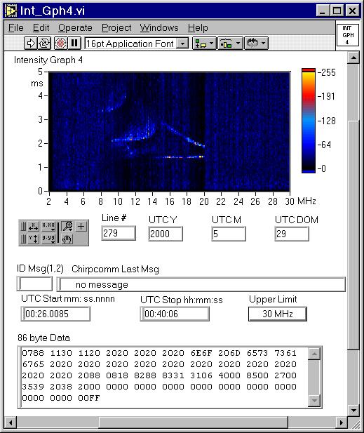 Time stamp value = ChTime +10* RcvrFreq(MHz) + 0.0165 secIn operation the PC Chirp program is allowed to run for about 24 hours and the statistics file accumulates those chirps whose periods are defined in the ini file. Optionally a log file can be saved that has all the time stamps.