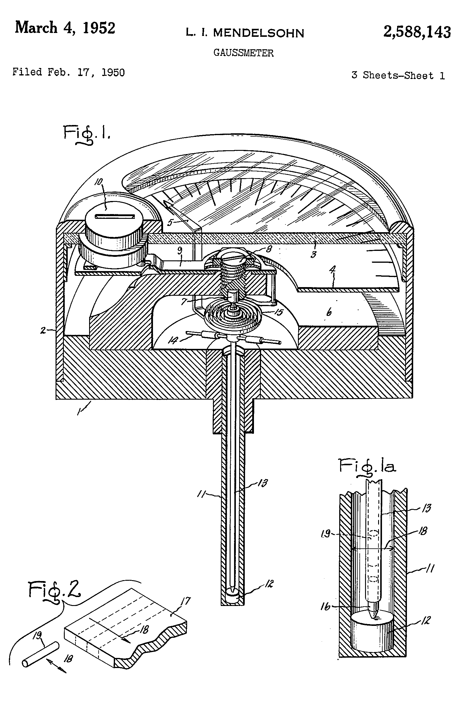 2588143Gauss meter, Mendelsohn Lewis I, Gen Electric, Mar 4, 1952, 324/259, 324/154.00R - AC or DC