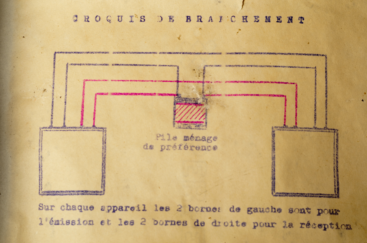Red Wires: Shows the right dial telegraph transmitter (left)