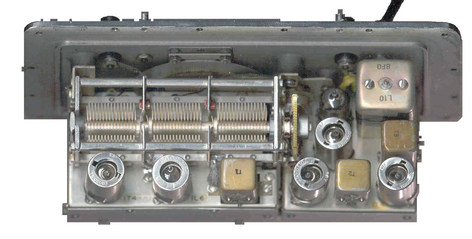 Superhetrodyne, 3 to 24 MHz coverage in 3 bands. Note that the receiver is not capable of receiving 300 WPM code.