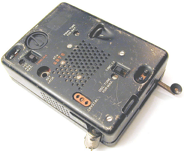 Two tube Crystal controlled 3 to 22 MHz with 10 to 15 Watts output. It's designed to be keyed from the front panel CW key manually or by plugging in the 300 word per minute GRA-71 high speed keyer. The signal would be received at a base station with a rack of equipment to record the message and then play it back at a slower speed.