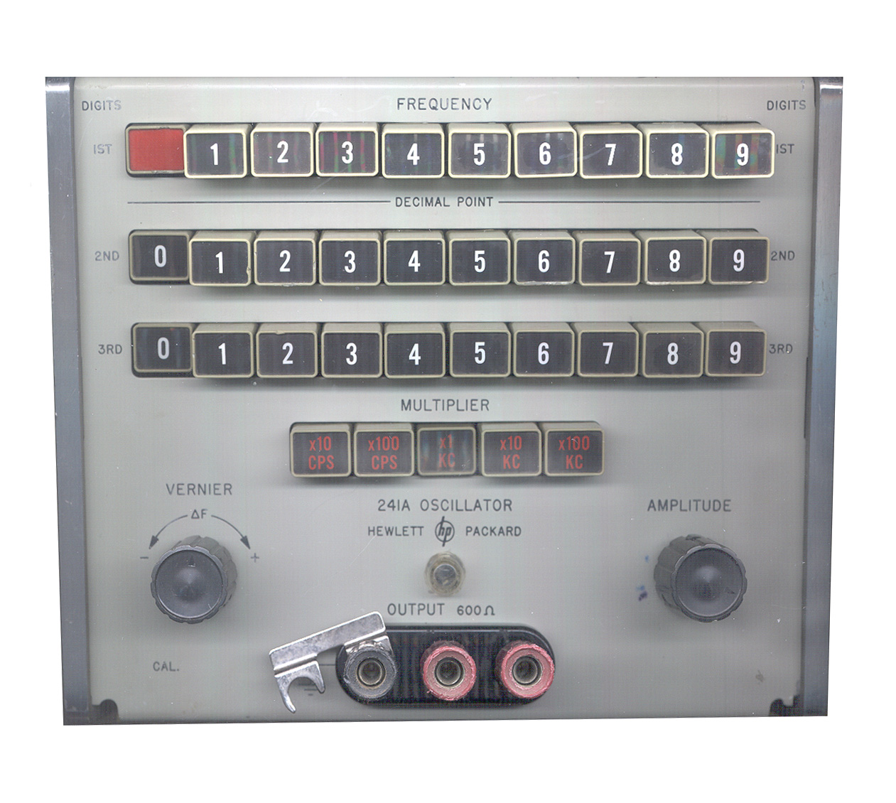 This is an A.C.mains powered audio oscillator that uses radio pushbuttons to select the frequency. Three digits of frequency can be set between 10.0 Hz and 999 kHz. The 600 Ohm output can be adjusted between near zero and about 5 Vrms.This is a 1/2 rack width by 4 rack units high.