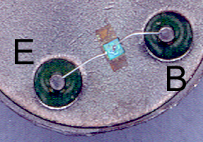emitter wire is NOT attached to the chip You can see the eutictic die attach scrub marks. HP 6200 Scanner image at 1200 DPI |
