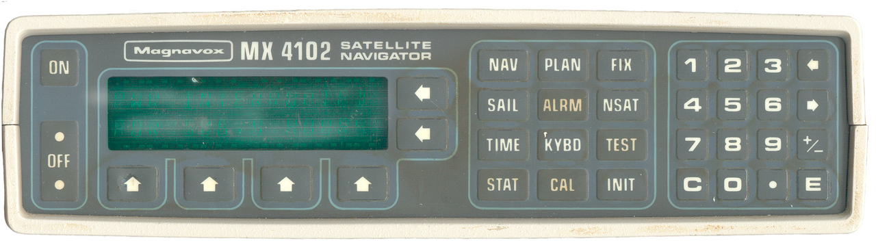 The MX 4102 was designed by Magnavox, Torrence, CA (now Leica Geosystems Group) for use on pleasure boats and since there can be a number of hours between Transit fixes it includes dead reckoning to keep the position updated. This requires external compass and speed inputs from any number of the common types of sensors used abroad ships and the appropriate interface options for the MX 4102.
