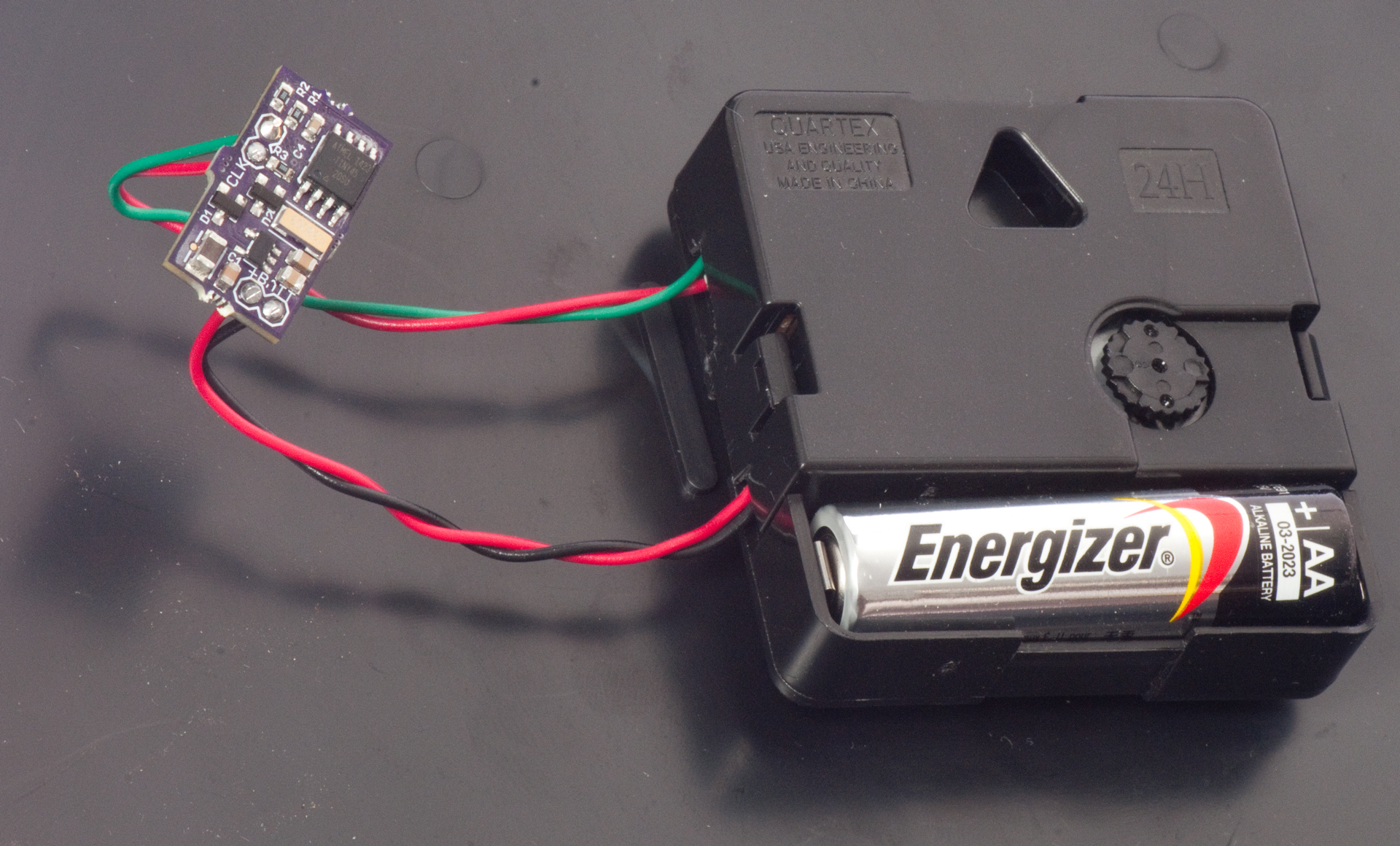 GM used a similar mechanism for car clocks that run from the battery: 2741083 Electric clock ratchet drive, Raymond H Sullivan, Peter R Contant, GM, 1956-04-10