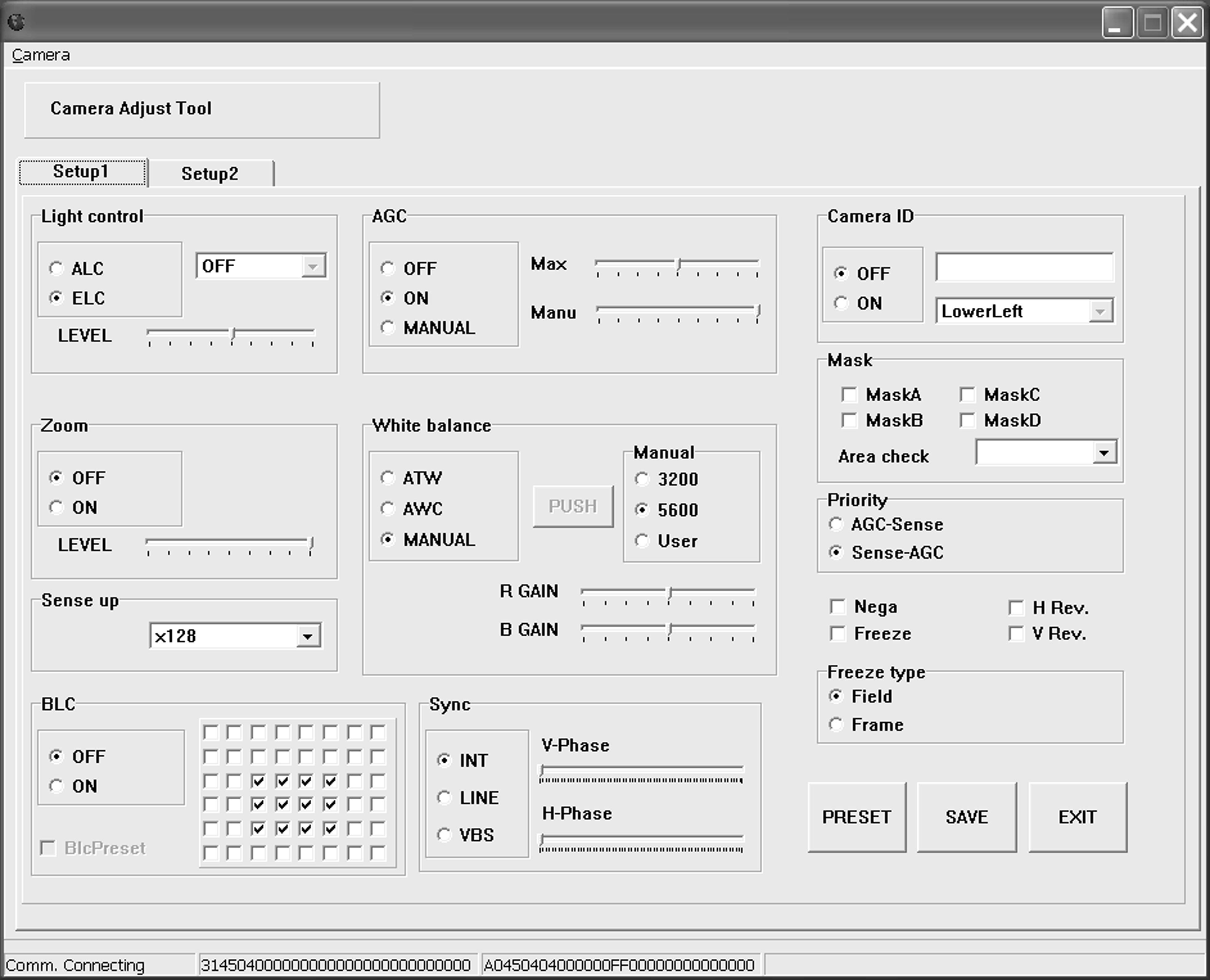 It may be that Sense really means Shutter and AGC means Iris, but I'm