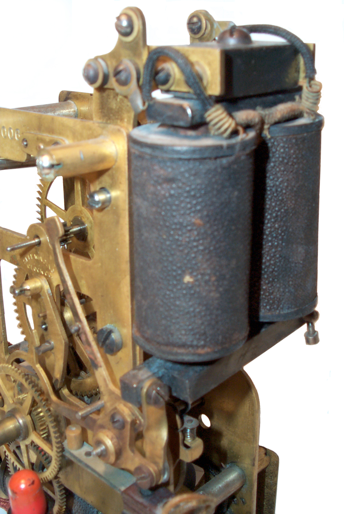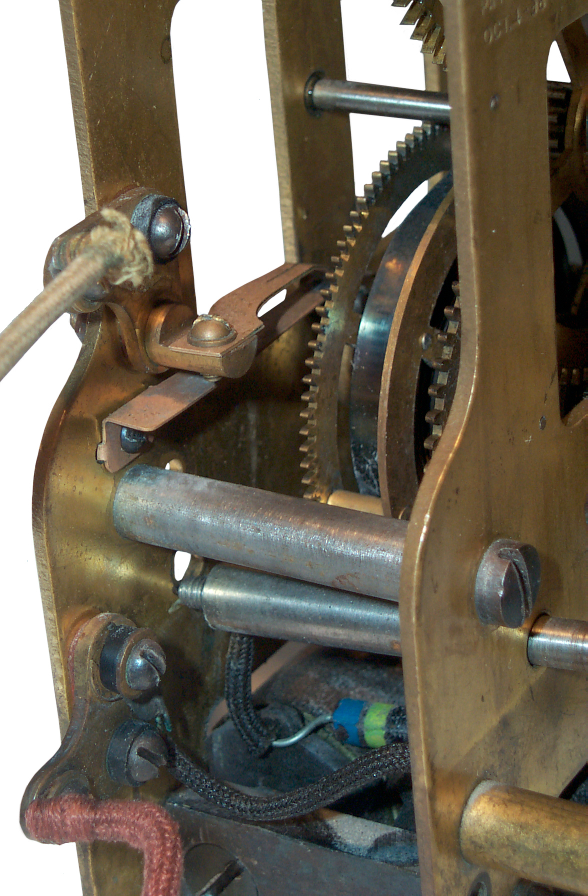 Gong striking mechanism for synchronized clocks, C.H. Pond,