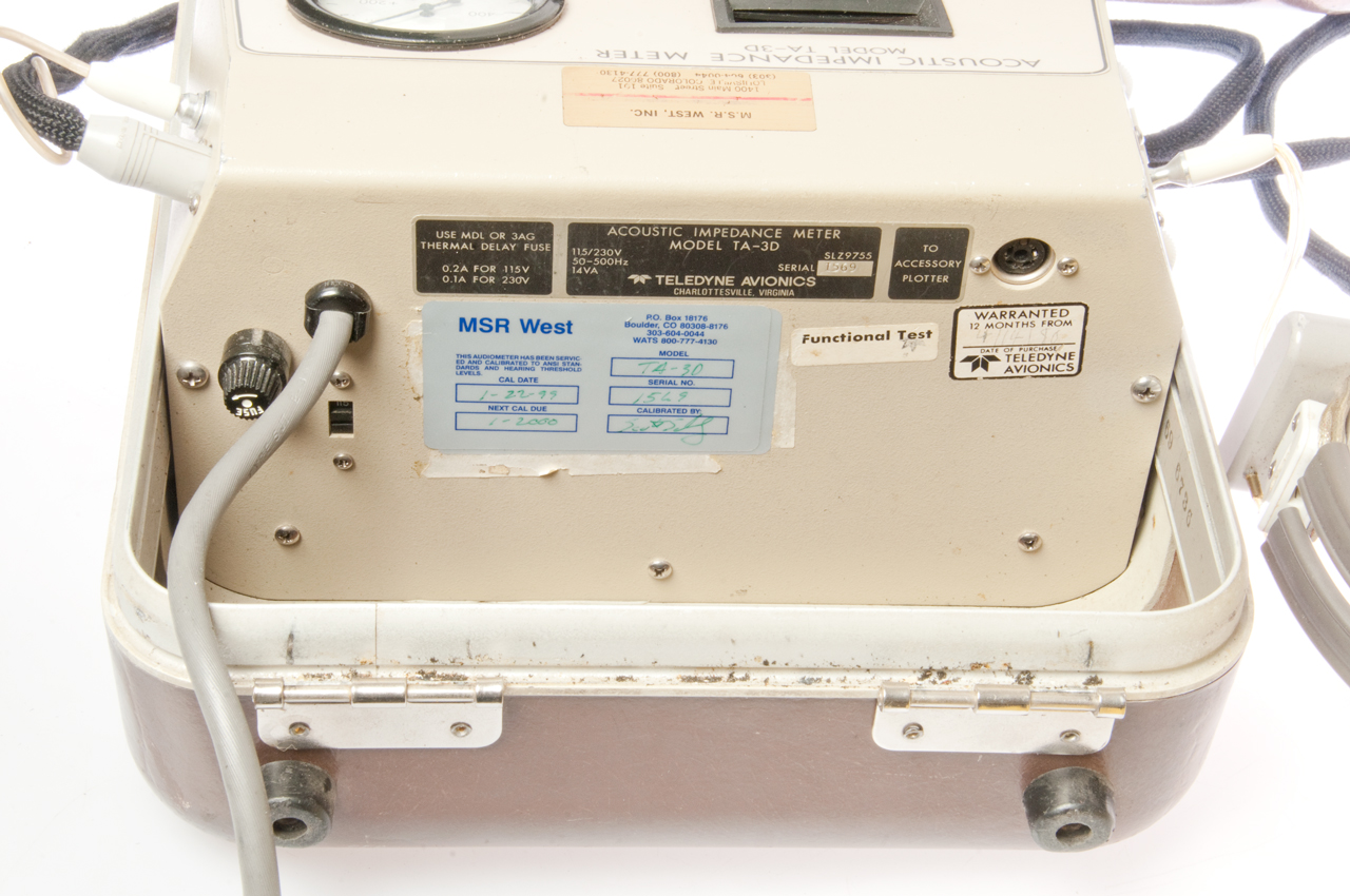 eBay listing for "Teledyne Impedance Meter Model TA-7B USED Original Carton" Rear panel has connectors: Pressure (small hole) , Headset (1/4" phone jack), Earprobe (7 socket DIN), RS-232 (DB-25f). See 4009707 above. This page is for the Teledyne TA-3D and the eBay listing is for the newer TA-7B.