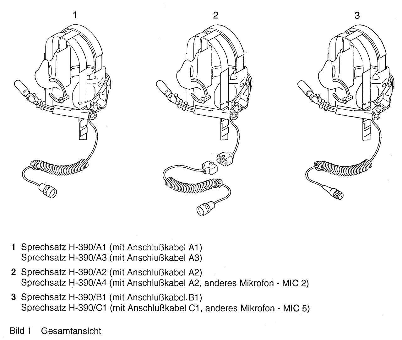 These headsets can be separated into three parts: The cable that connects to the radio (or intercom) and the bail out connector, the cable between the bail out connector and the switch box, the cable from the switch box to the headset proper.