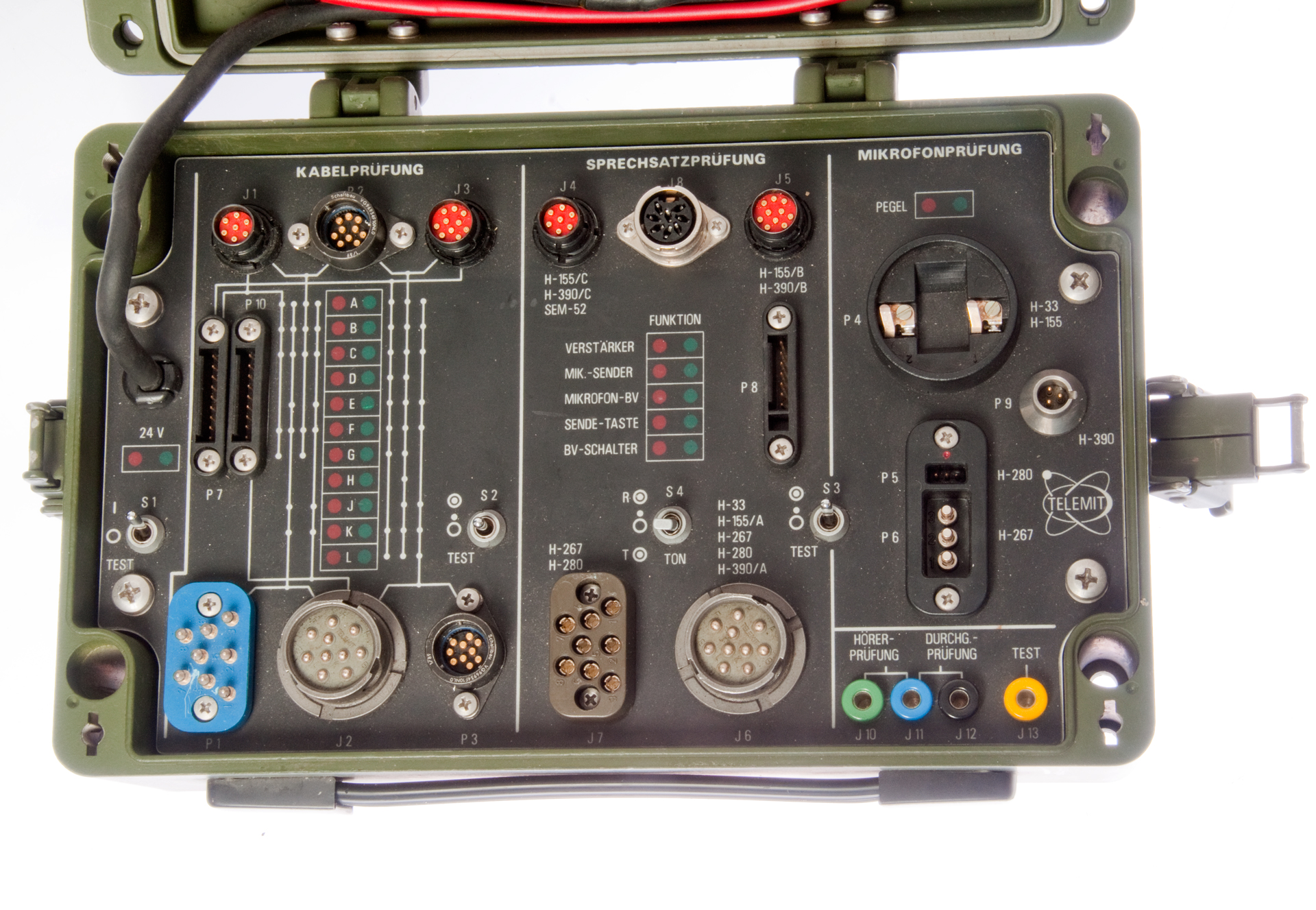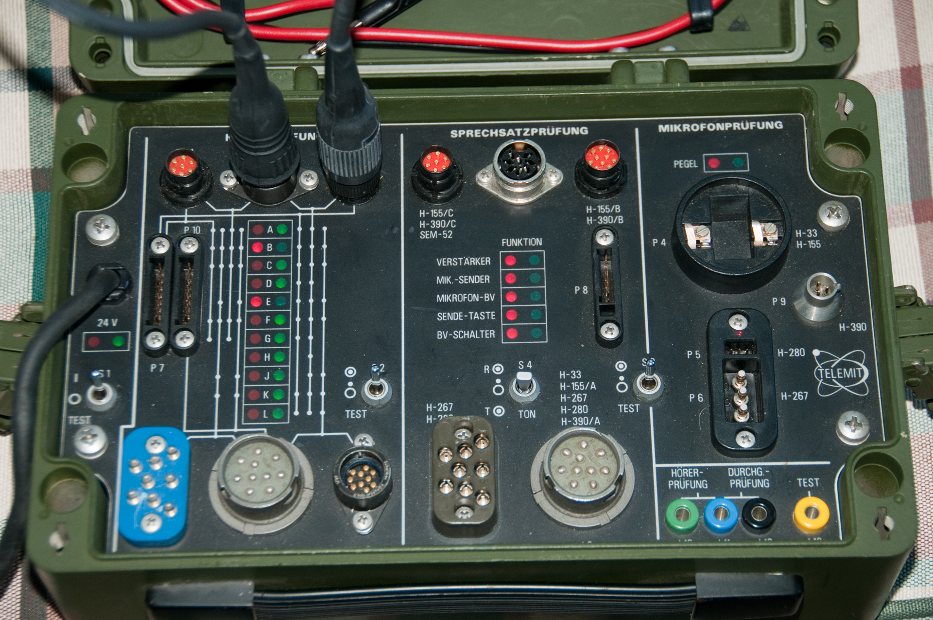 This TS-2839 test set can test the above cables, the switch box and the microphone and speakers in the headset.
