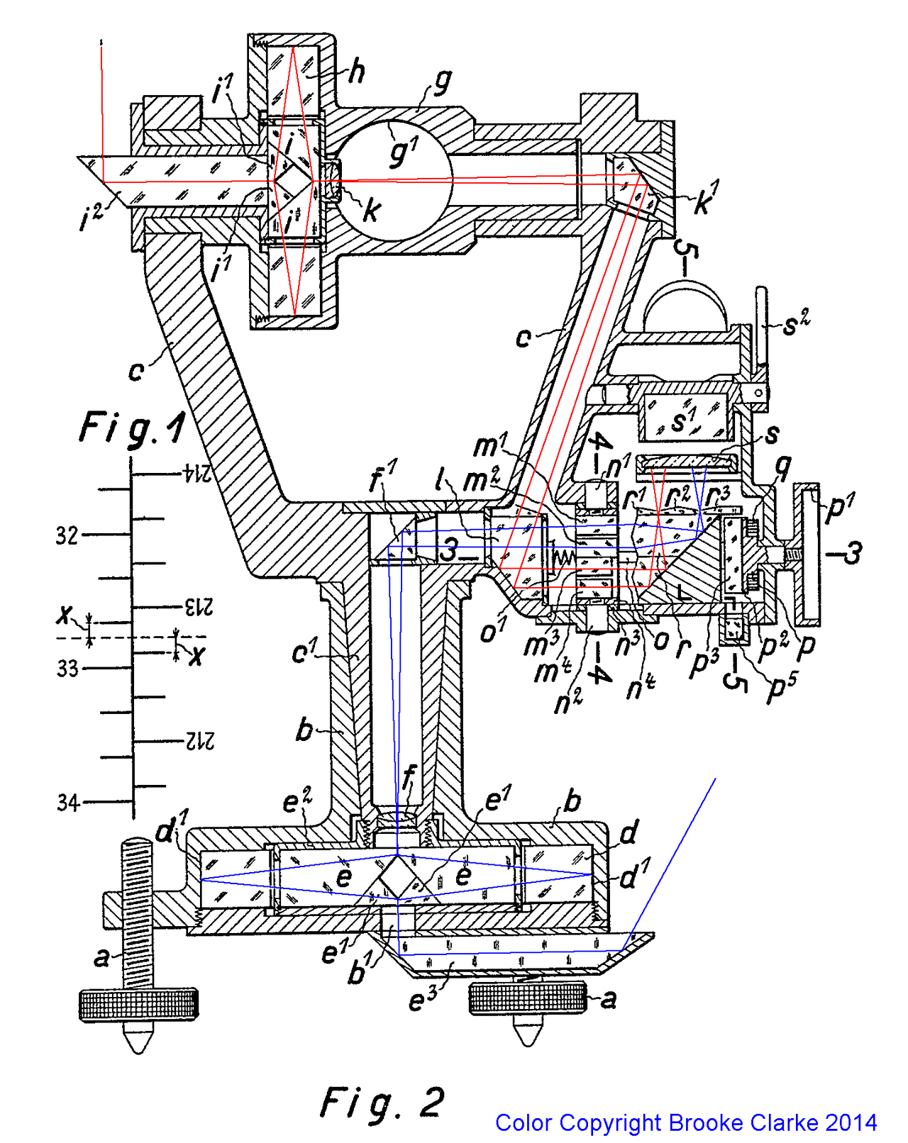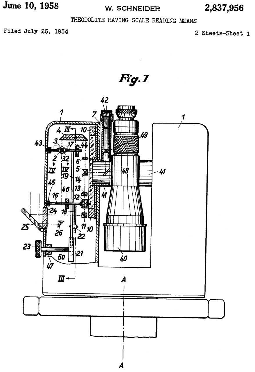 1494565Theodolite, spectroscope, and the like, May 20, 1924, 356/147 - "It is the object of the present invention to enable the observation of the cross webs and the reading of the micrometer to be taken without removing the eye from the eyepiece." Note: "web" means spider web, modern term cross hairs or reticule.