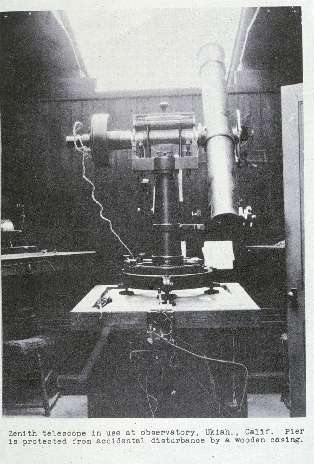 California's First Observatories. By Peter Abrahams. Ukiah observatory had determined it's latitude and published it in 1897.
