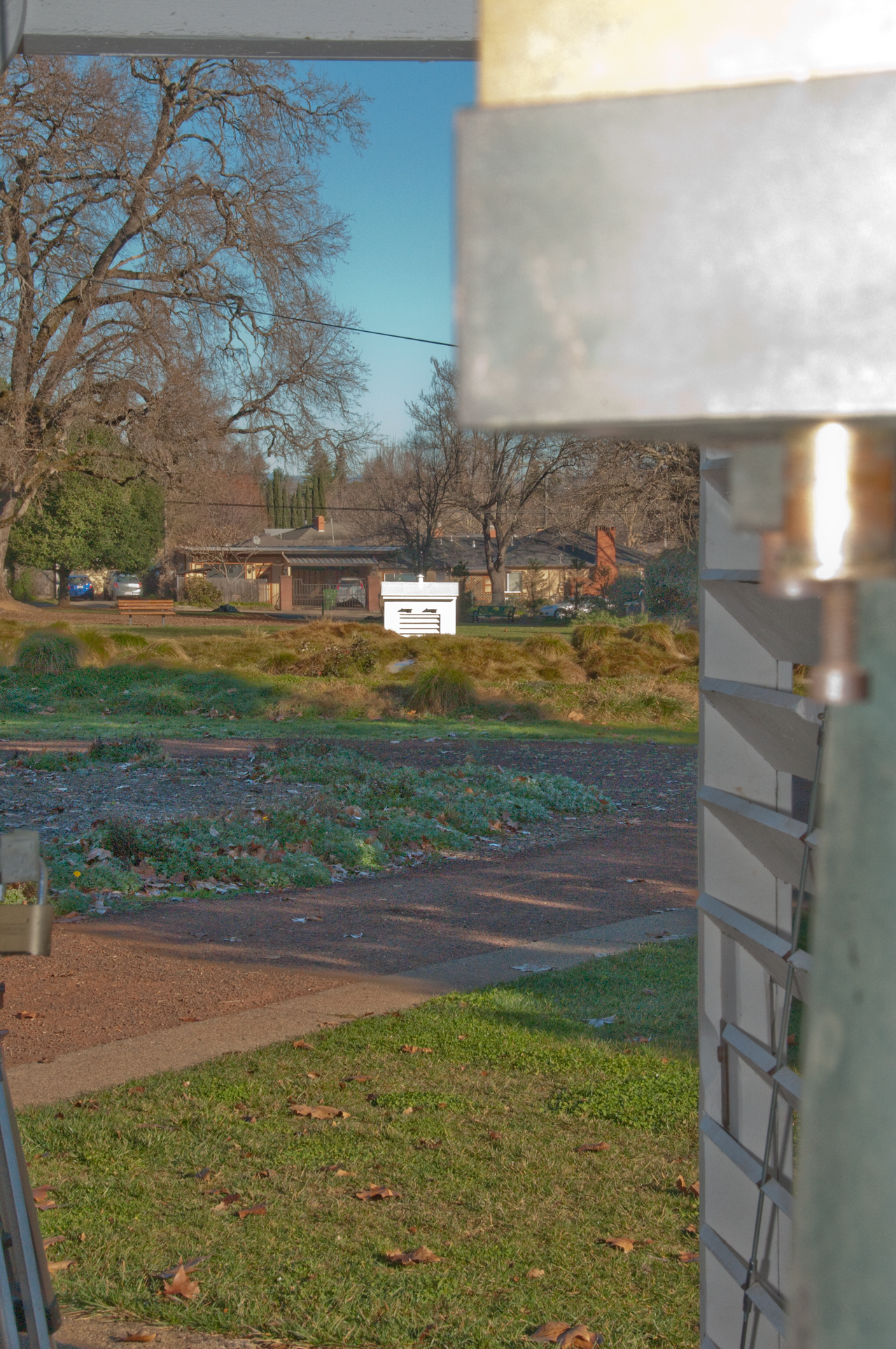Building protected from sun. Two out buildings to the right. Viewed from Observatory Ave. |