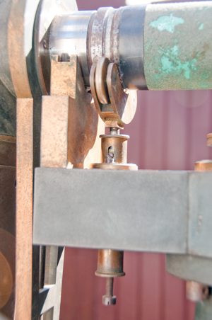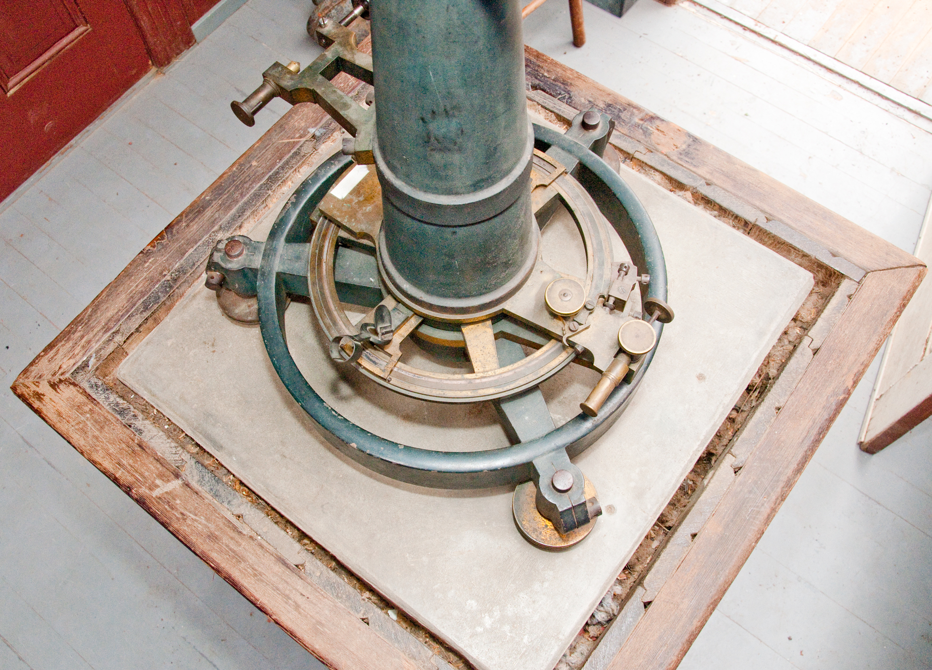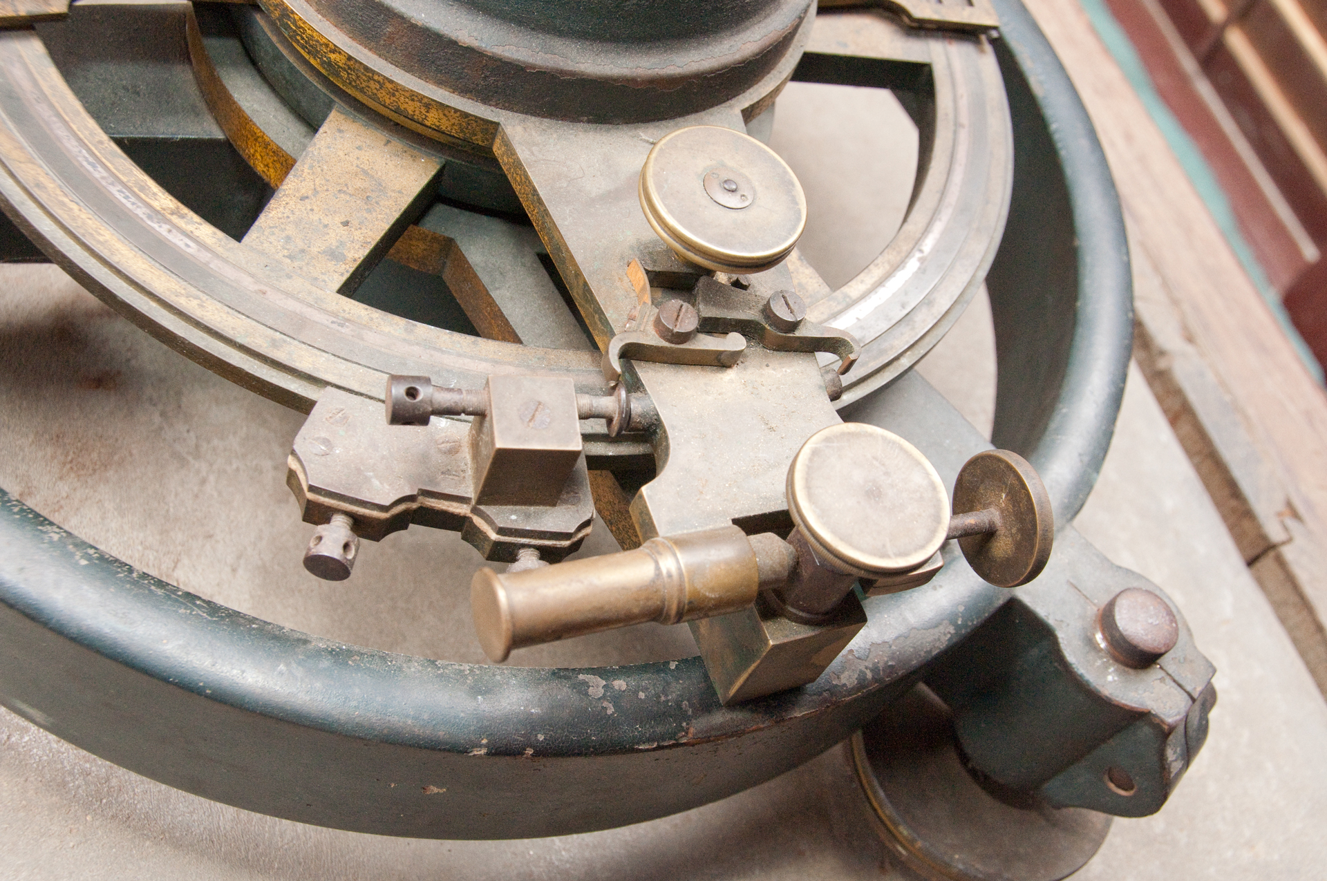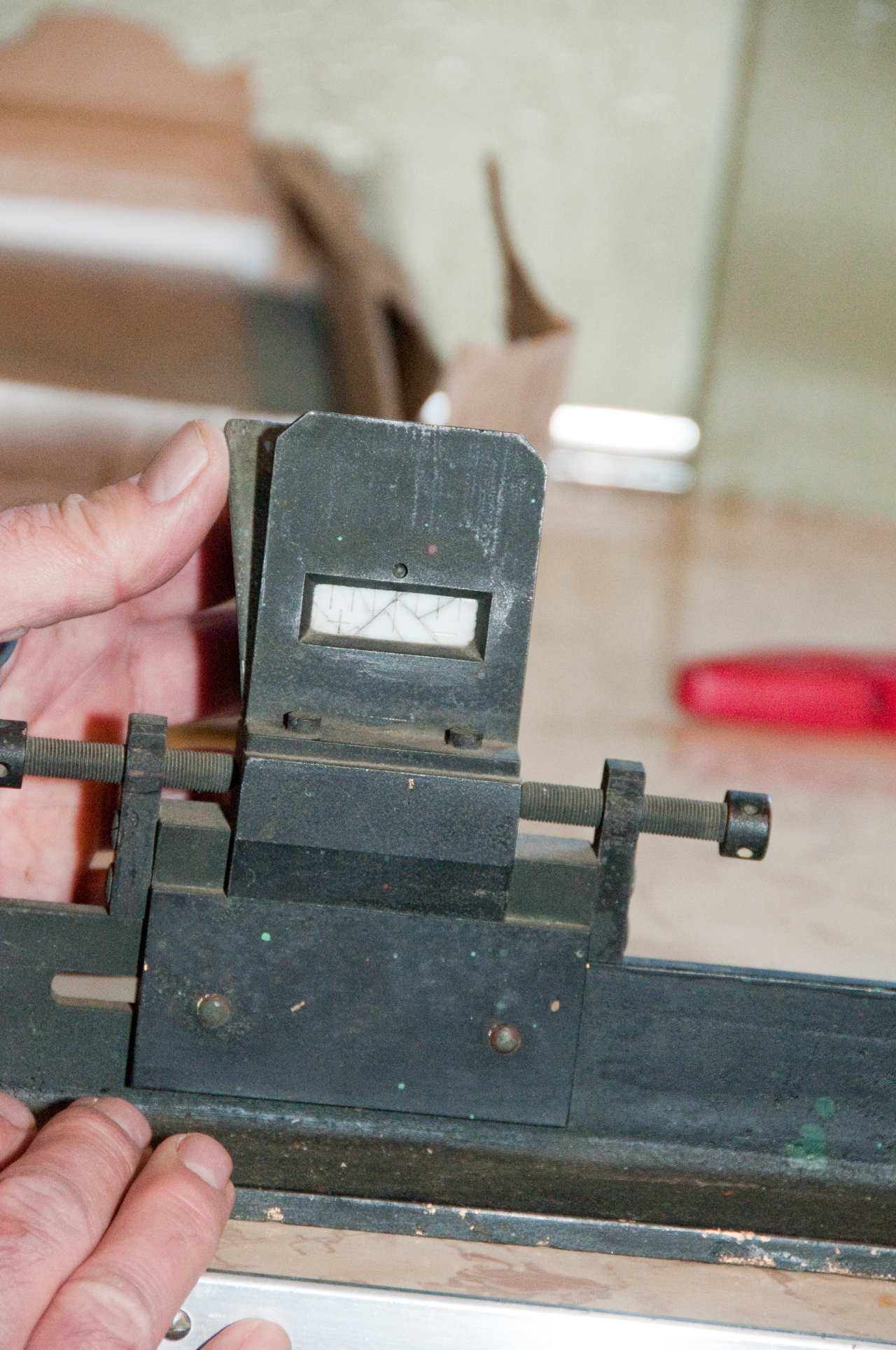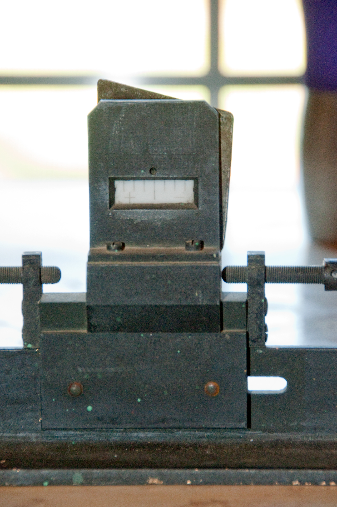 right in this photo The microscope to read the vernier scale (Wiki) is missing. Blue shrink wrapped package in background is the sidereal pendulum clock. Not unwrapped yet, will be in interpretive building. ![]() |