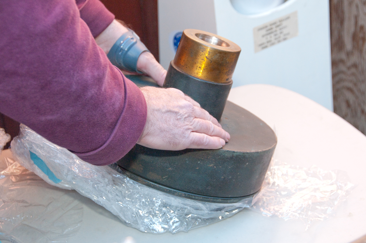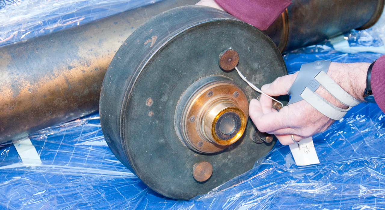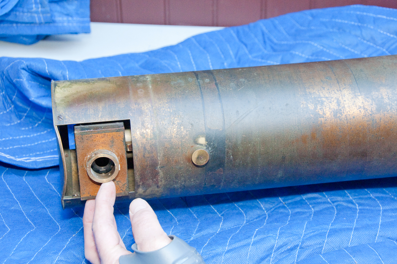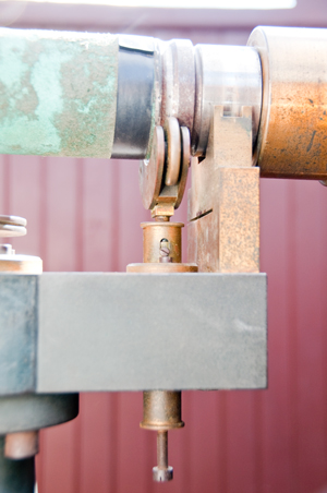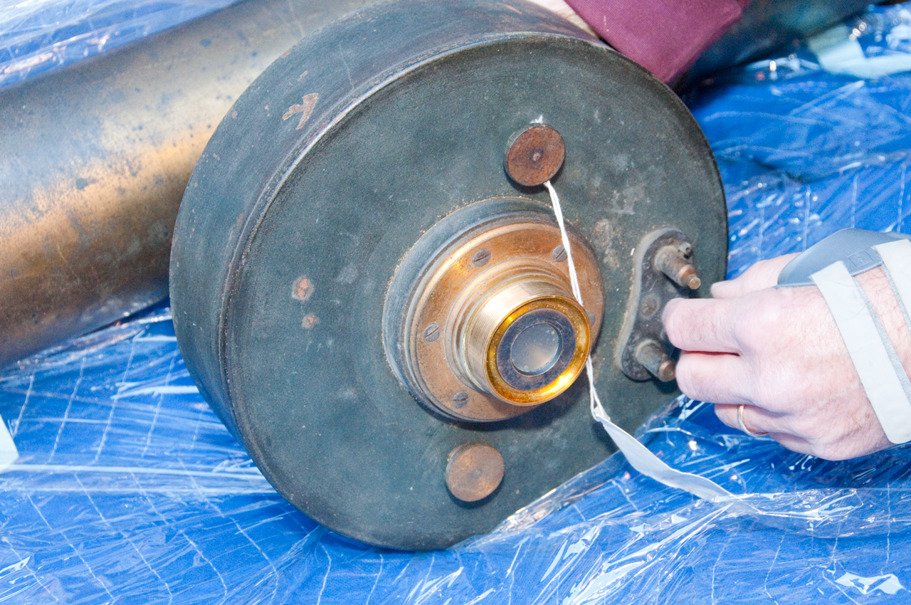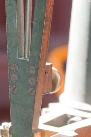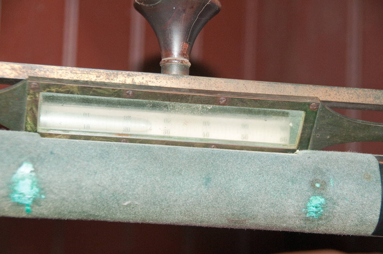 right in this photo The microscope to read the vernier scale (Wiki) is missing. Blue shrink wrapped package in background is the sidereal pendulum clock. Not unwrapped yet, will be in interpretive building. ![]() |