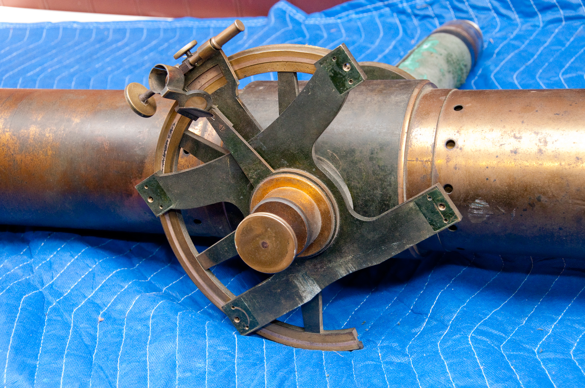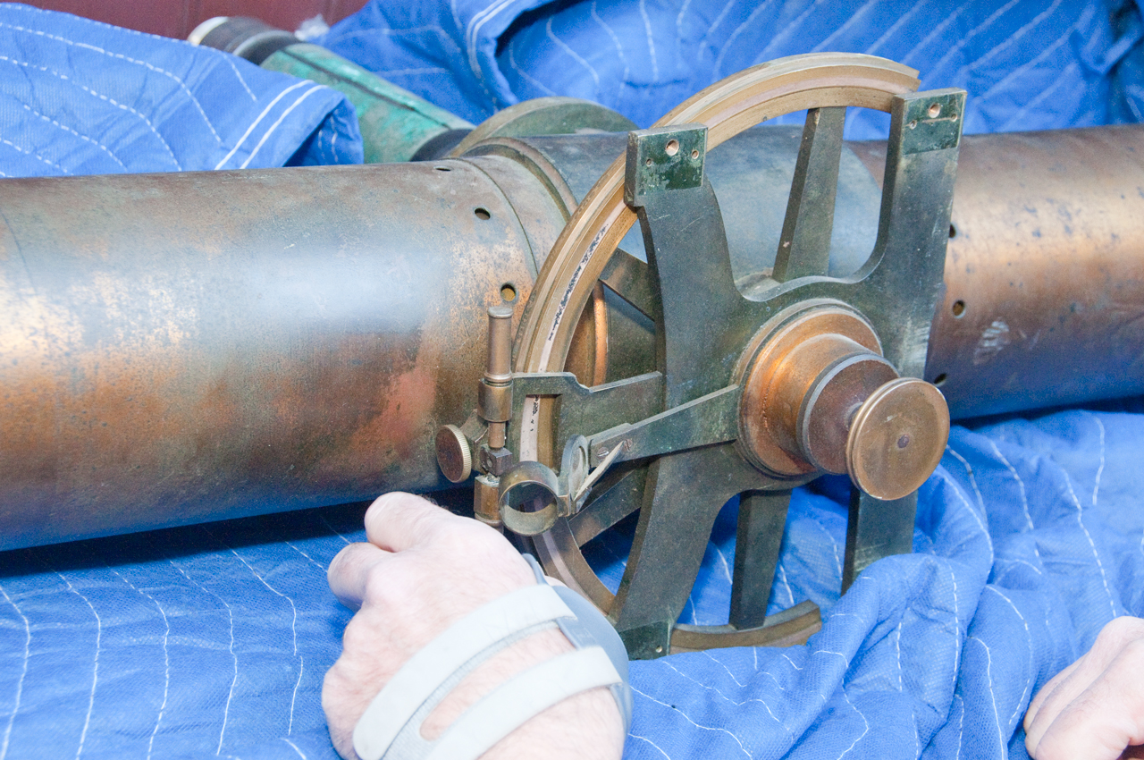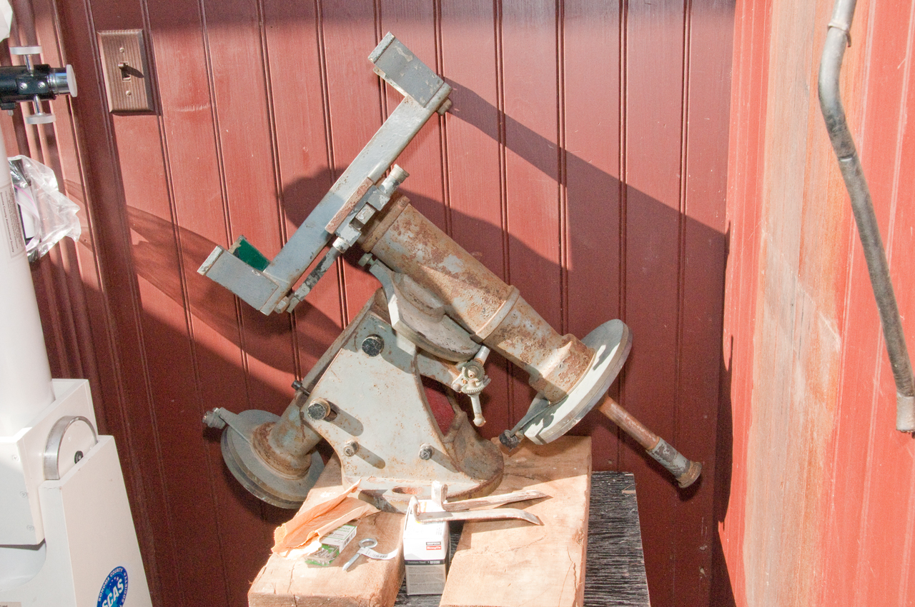 While taking photos of the unpacking of the zenith telescope I discovered a donated mount (see UnPacking Fig 32 above). Martin Bradley posted photos of these parts on the Antique Telescope Society Yahoo Group photos section about 12 Jan 2014. Photo Courtesy of City of Ukiah