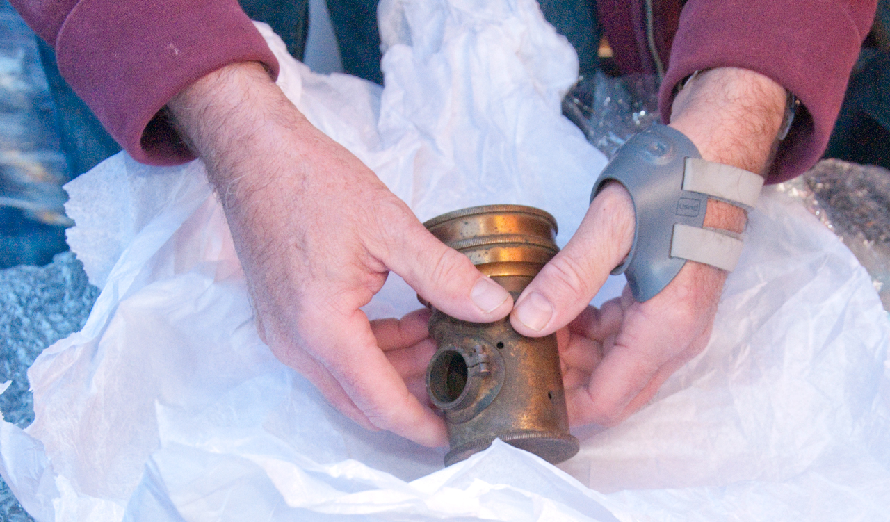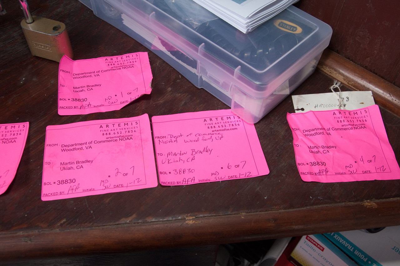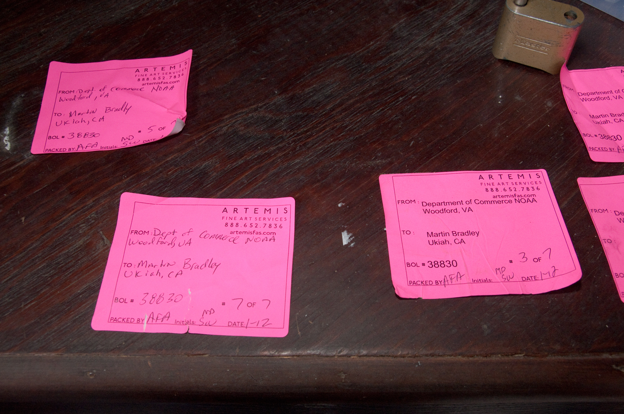 While taking photos of the unpacking of the zenith telescope I discovered a donated mount (see UnPacking Fig 32 above). Martin Bradley posted photos of these parts on the Antique Telescope Society Yahoo Group photos section about 12 Jan 2014. Photo Courtesy of City of Ukiah