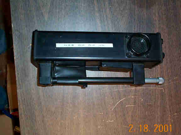 The test set is 4.5"x6"x5" (H/W/D), black in color, and has a removable lid held in place by fasteners similar to that used for the PRC-6 and PRC-10 cases. There are no nomenclature placards on the test set; however, a production order tag was included. The production order tag indicates that the test set number is TS-201A, made under production order 7822 at factory 38. The test set has two umbilical cords, one having a miniature 4 pin connector and the other being a nine pin miniature connector having the same form factor as the base of a 12AT7 tube base. There is a three position bat handle switch on the test set labeled XMT TONE ON, XMT TONE OFF and RECV and an eight position rotary mode switch labeled B+, BIAS, AGC BATTERY, PLATE CURRENT, 11.5T and AUDIO OUTPUT. The eighth switch position is not labeled. The test set also includes a multiscale meter.