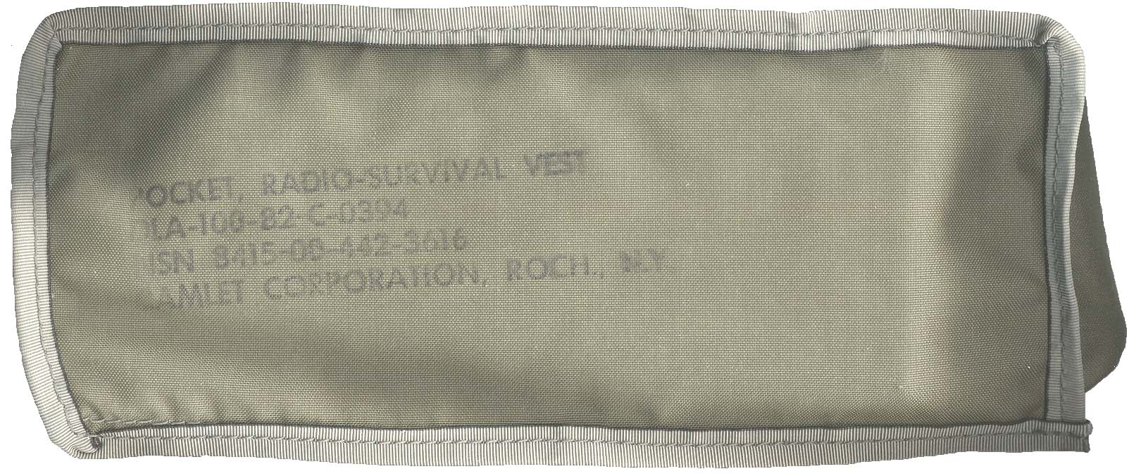 The pocket that can be sewn onto survival vest SRU-21 will hold the PRC-90 with the 90BAv2 battery adapter attached. My pocket has contract number DLA-100-82C-C-0394 and manufacturer Camlet Corporation,Roch. NY. If the radio is installed into the vest antenna first then the battery adapter makes a nice handle to remove the radio.