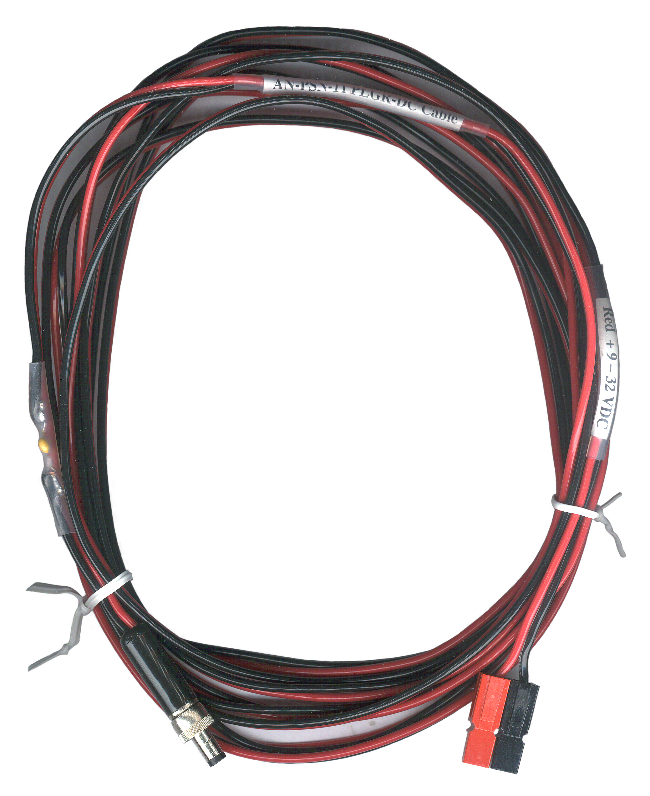A 15 foot long cable with Power Pole connectors in the standard ARES configuration (since the PLGR will run from a "12 Volt" vehicle system (10 to 15 Volts actual) as well as from a military "24 Volt" system (20 to 30 Volts actual). It has a resettable fuse to protect from: