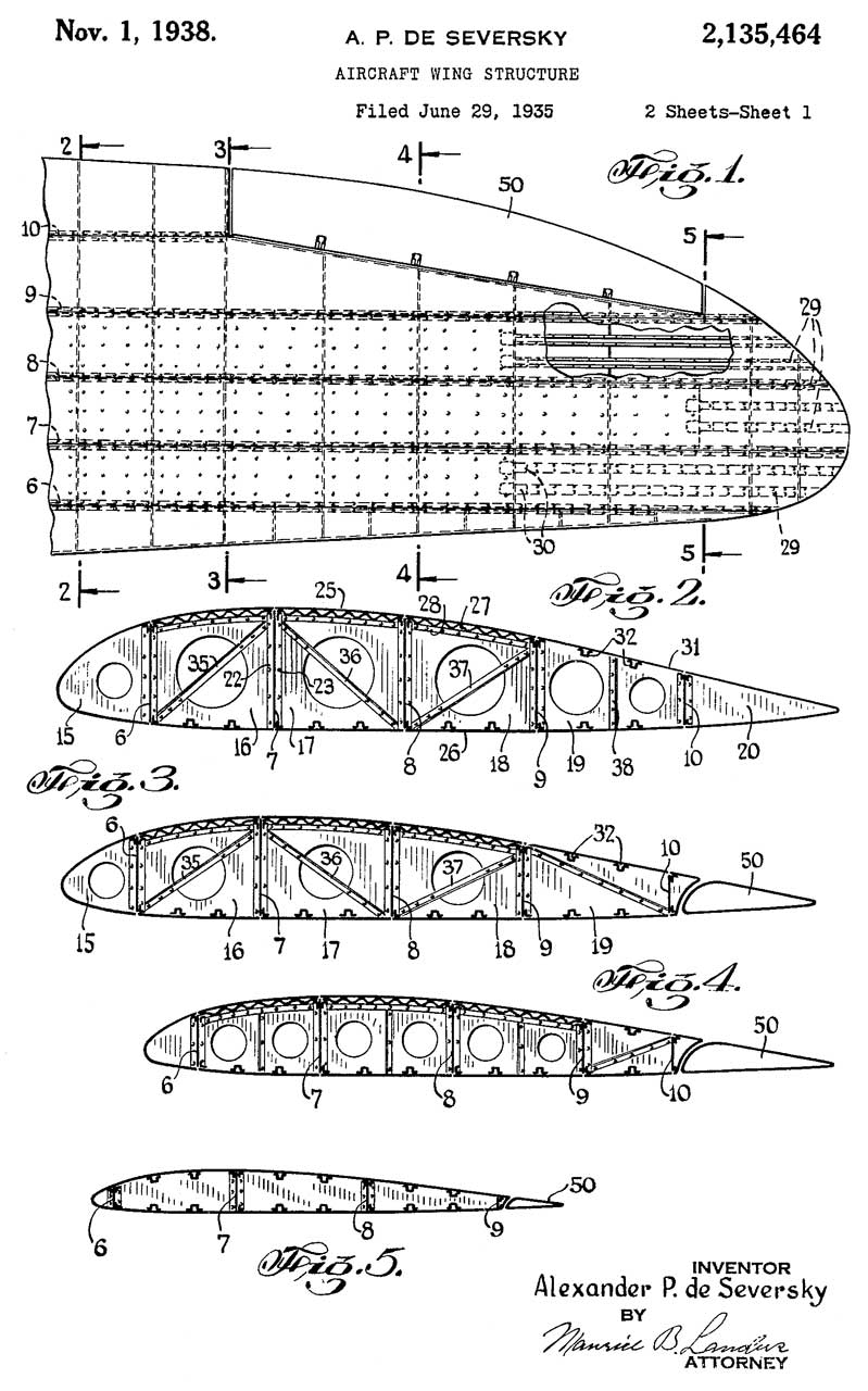 The book (Wiki) Victory Through Air Power (Ref 138) was written just after Pearl Harbor (7 Dec 1941) and came out in 1942. At that time high altitude bombers were the ultimate weapon since RADAR was then highly classified. There was no way to detect them and no way to bring them down. In the book Seversky points out the air power was a major factor in pretty much all the battles up to the time the book was written. Aircraft sank eight battleships (Wiki) Pearl Harbor, 10 Dec 1941 Japan sank the HMS Prince of Wales and HMS Repulse (Wiki). Essentially, the Army and Navy are no longer relevant in the age of air power. Yet the Navy was operating battleships up until the end of W.W.II. The book mentions a heavy bomber by Glenn Martin, but the following patent is post W.W.II.