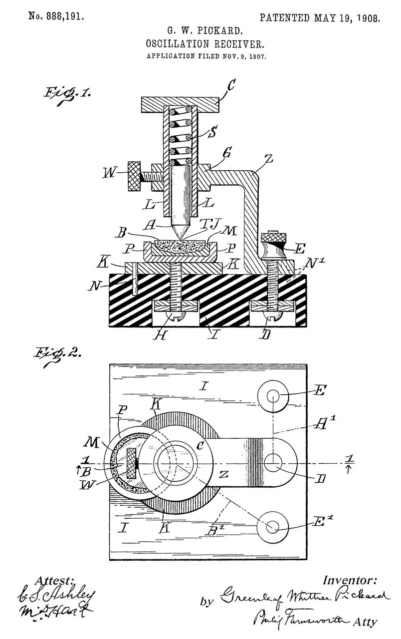 888191 Oscillation-receiver, Greenleaf Whittier Pickard, 1908-05-19, - Crystal detector, Cat's wisker