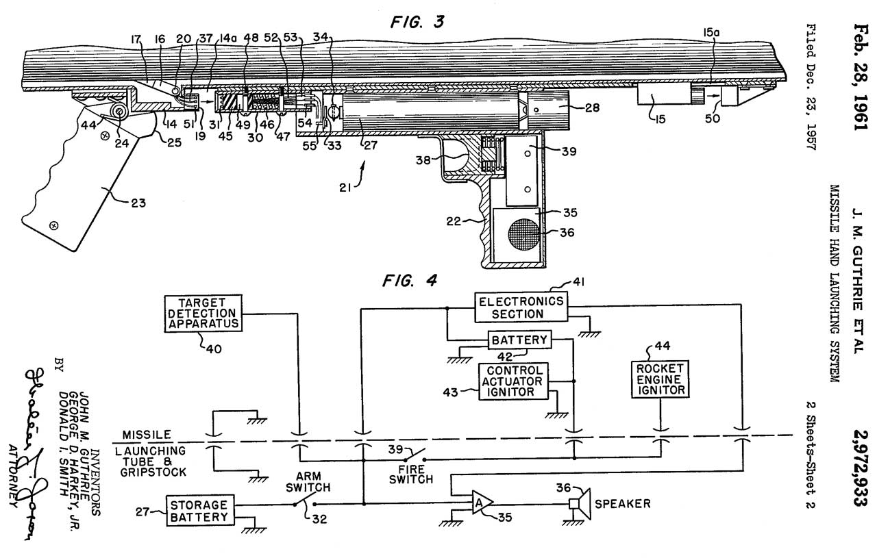 4203569 Fin and nozzle unit for a free-flight rocket, William S. Marks, BEI Electronics, 1980-05-20, - "The invention is particularly applicable to military rockets which may be launched from launching tubes on a military helicopter, other aircraft, or on the ground."