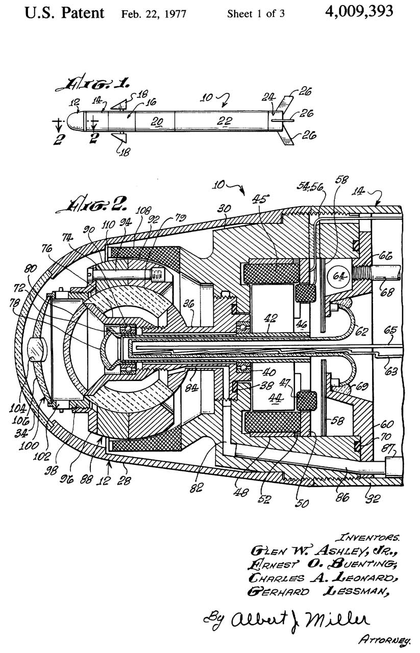 2998771 Projectiles, Lloyd G Mosier, App: 1955-04-01, Pub: 1961-09-05, - attempt to make FFAR more accurate using IR sensor and side thrusts, rolling airframe