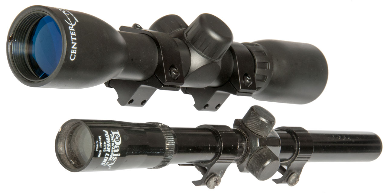 4x15. The CenterPoint is more than twice the objective dia plus the CenterPoint scope has optical coatings and it looks like the Daisy is raw glass. ![]() |