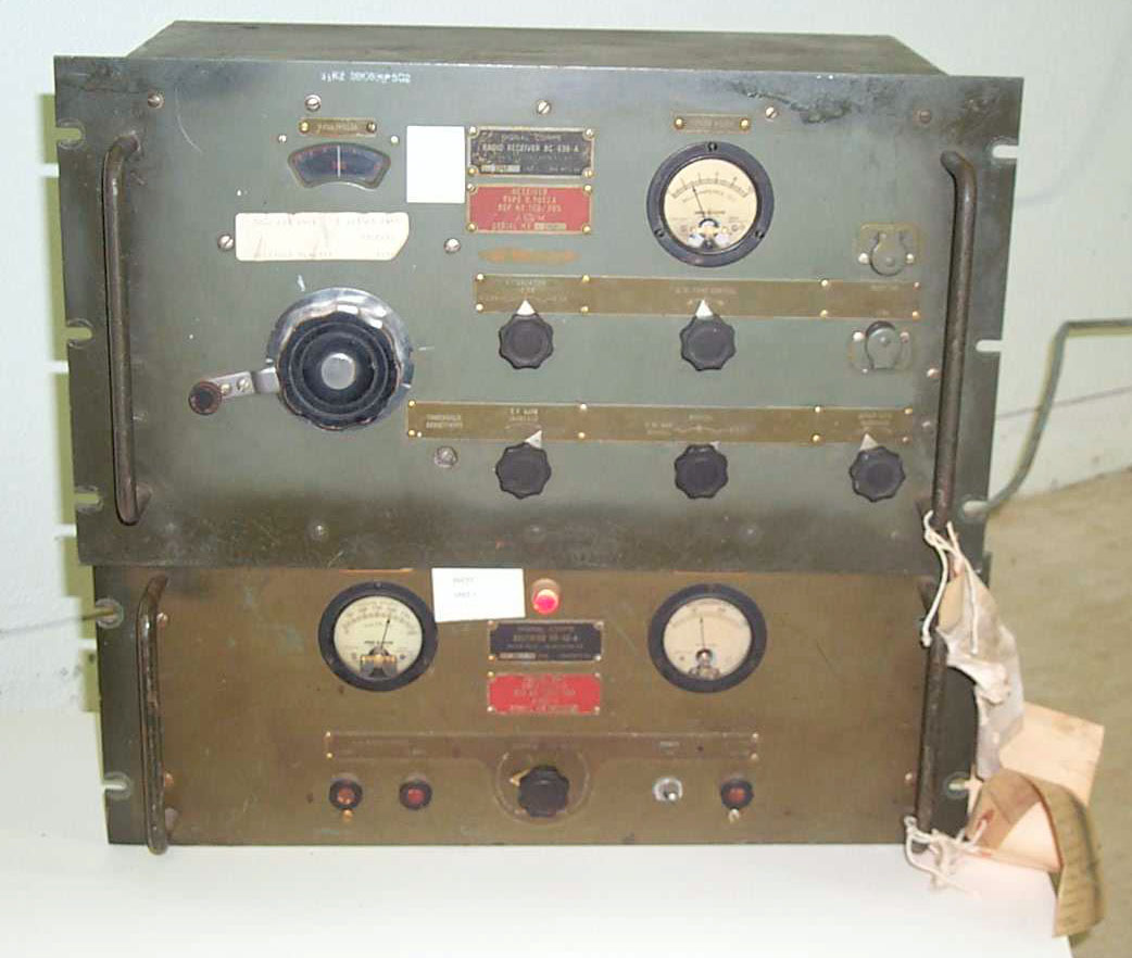 The top box has a black ID plate: SIGNAL CORPS BC-639-A a red ID