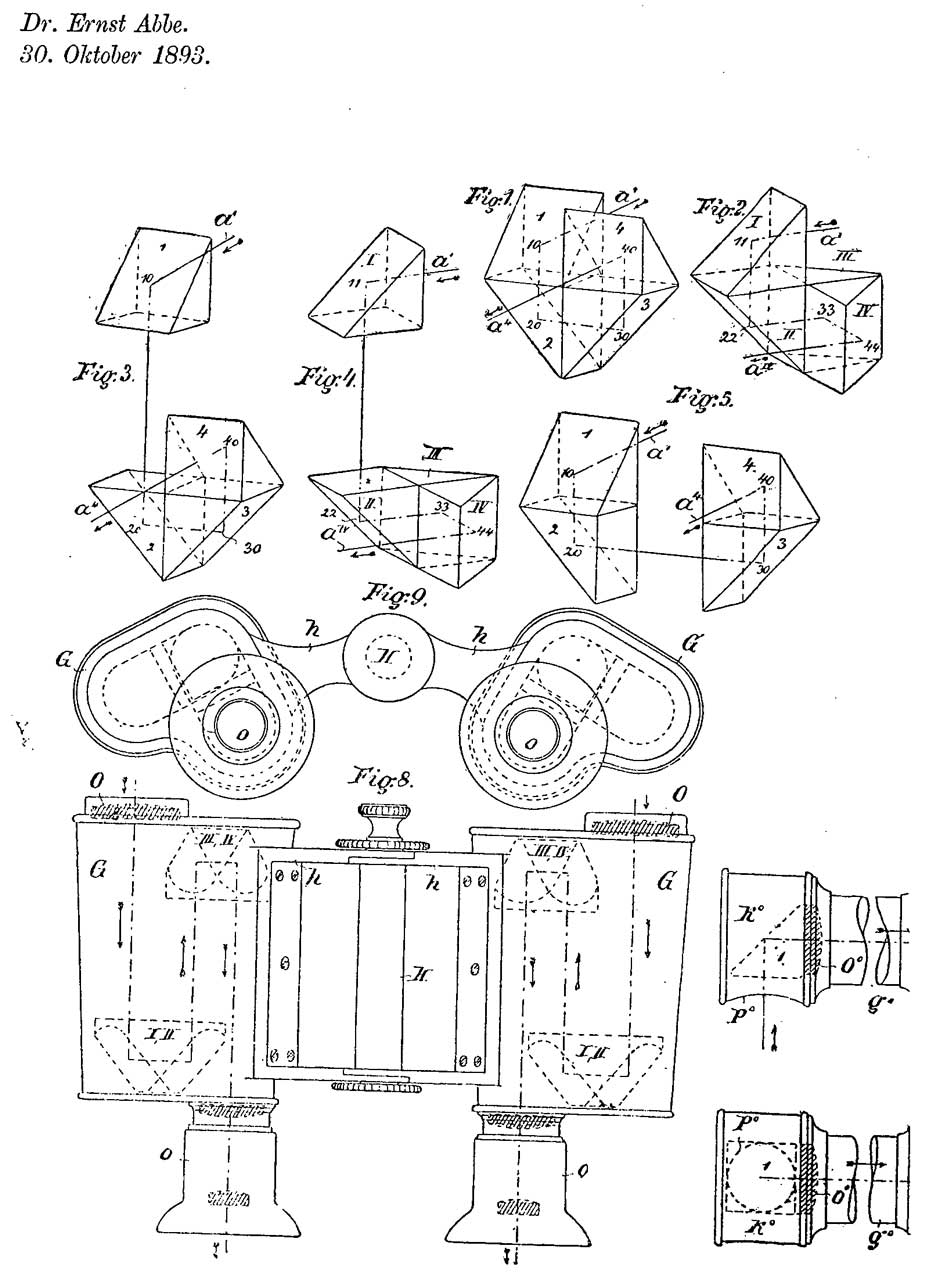 CH7791 (eSpaceNet) Double telescope with increased distance between the objectives, Abbe Dr Ernst, App: 1893-10-30, Pub: 1894-06-30, Exp: 1908- prism binoculars