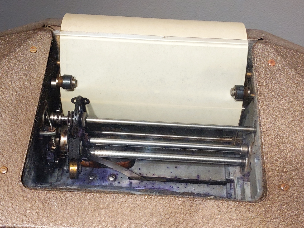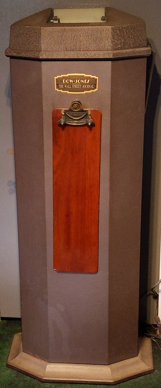 Although this news printer used wide (broad) sheets of paper instead of the narrow tape used for stock quotations, it still uses a single type wheel and the "ticker" method of printing so I think of it as a "stock ticker".