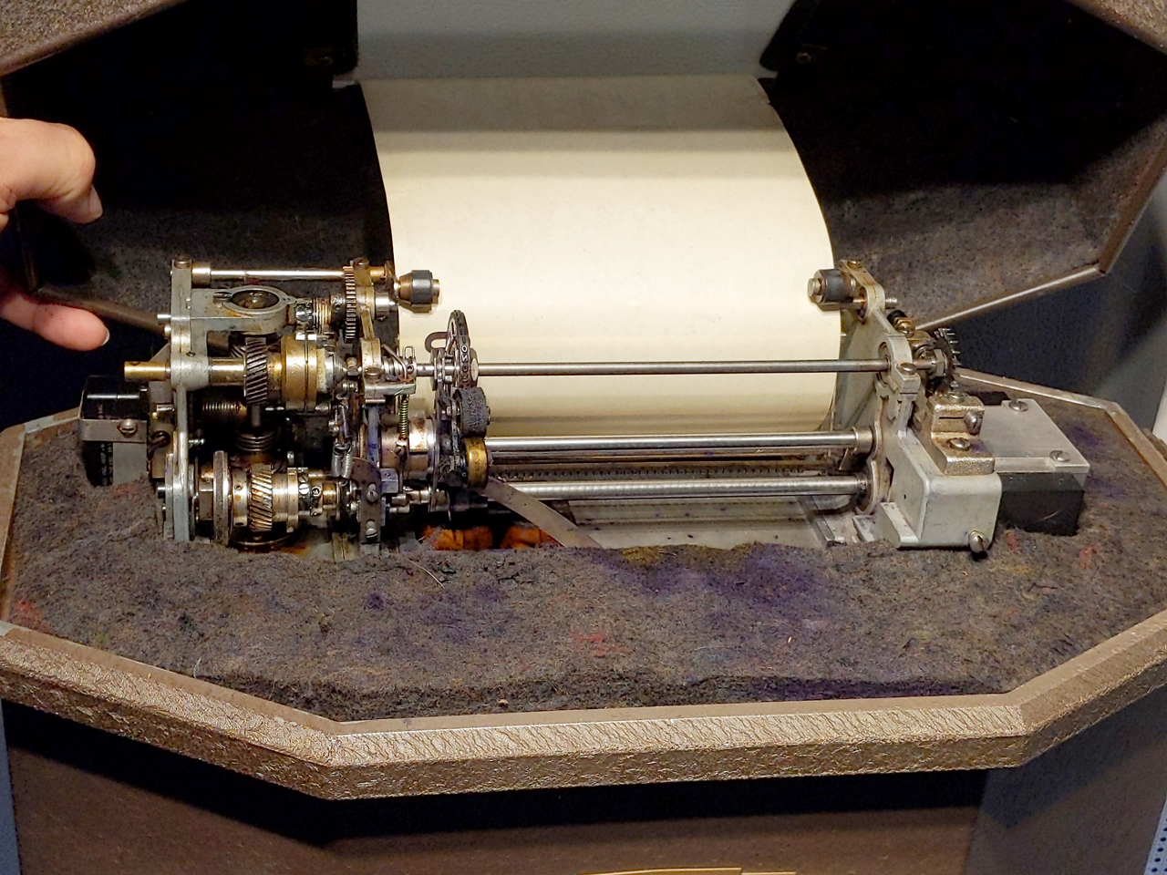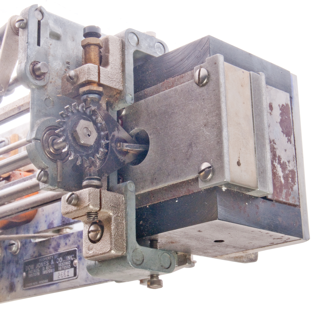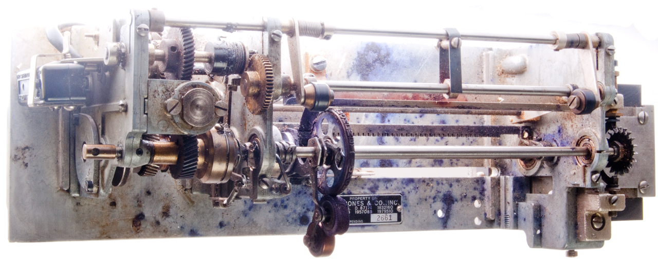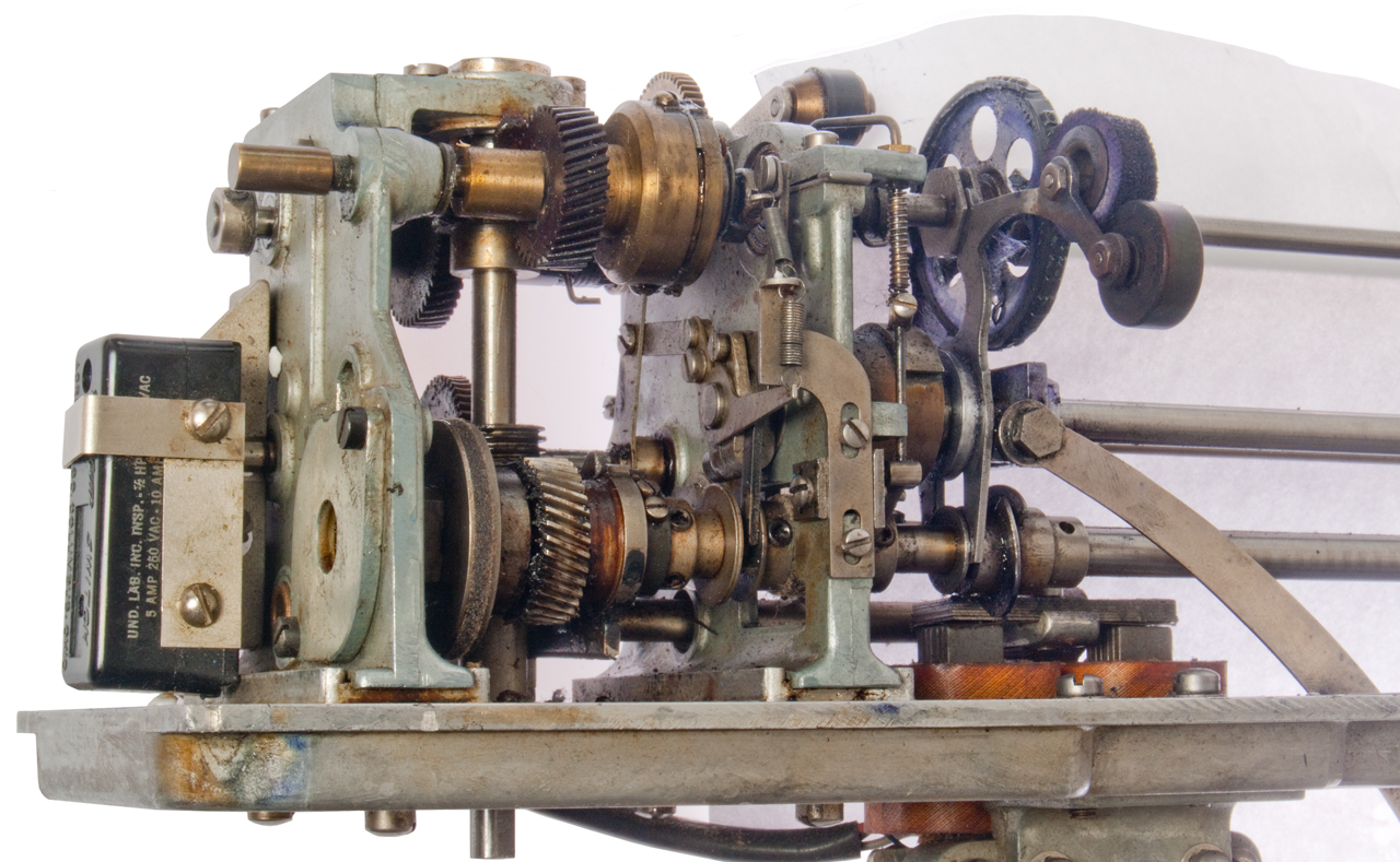 (Dow, Jones & Co.), Nov 17, 1931, 400/320 ; 178/28; 400/322; 400/332.4; 400/332.5; 451/392; 74/167 This may be for the wobble plate character advance. Calls: 1178215 Printing Telegraph Receiver, G.S. Conger (Dow Jones & Co.), Apr 4, 1916 Calls: 765978 Receiving Instrument for Printing Telegraph Systems, W.R. Landfear, Jul 26, 1904, |