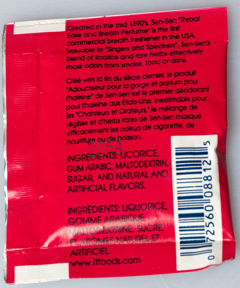 ![]() Licorice, Gum Arabic, Maltodextrin, Sugar, and Natural and Artificial Flavors. |