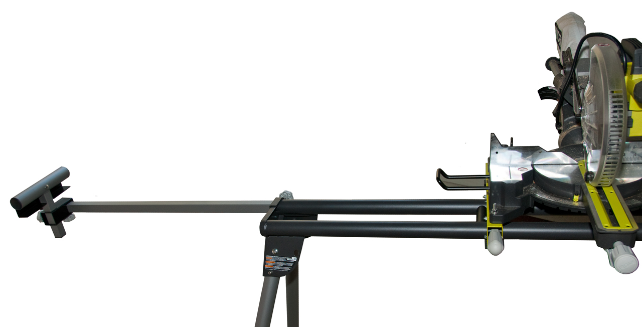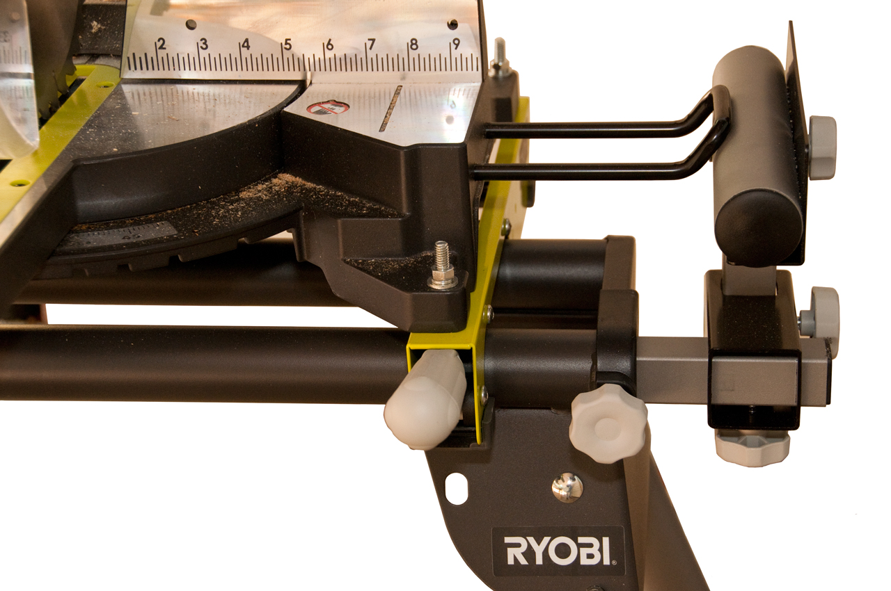 Before designing a way to integrate the Ryobi miter saw into the workbench I looked to see if there was a ready made stand and found the A18MS01, but the Home Depot web page said it only could be purchased in the store. The store said to look up A18MS01G, the Green version, which can be ordered on line with free shipping. So I have it on order. The reviews are pretty much all 5 stars. This stand will also accept other brands of saws so it is not restricted to just one model. It arrived in about a week with some damage to the package, but the stand parts were fine.