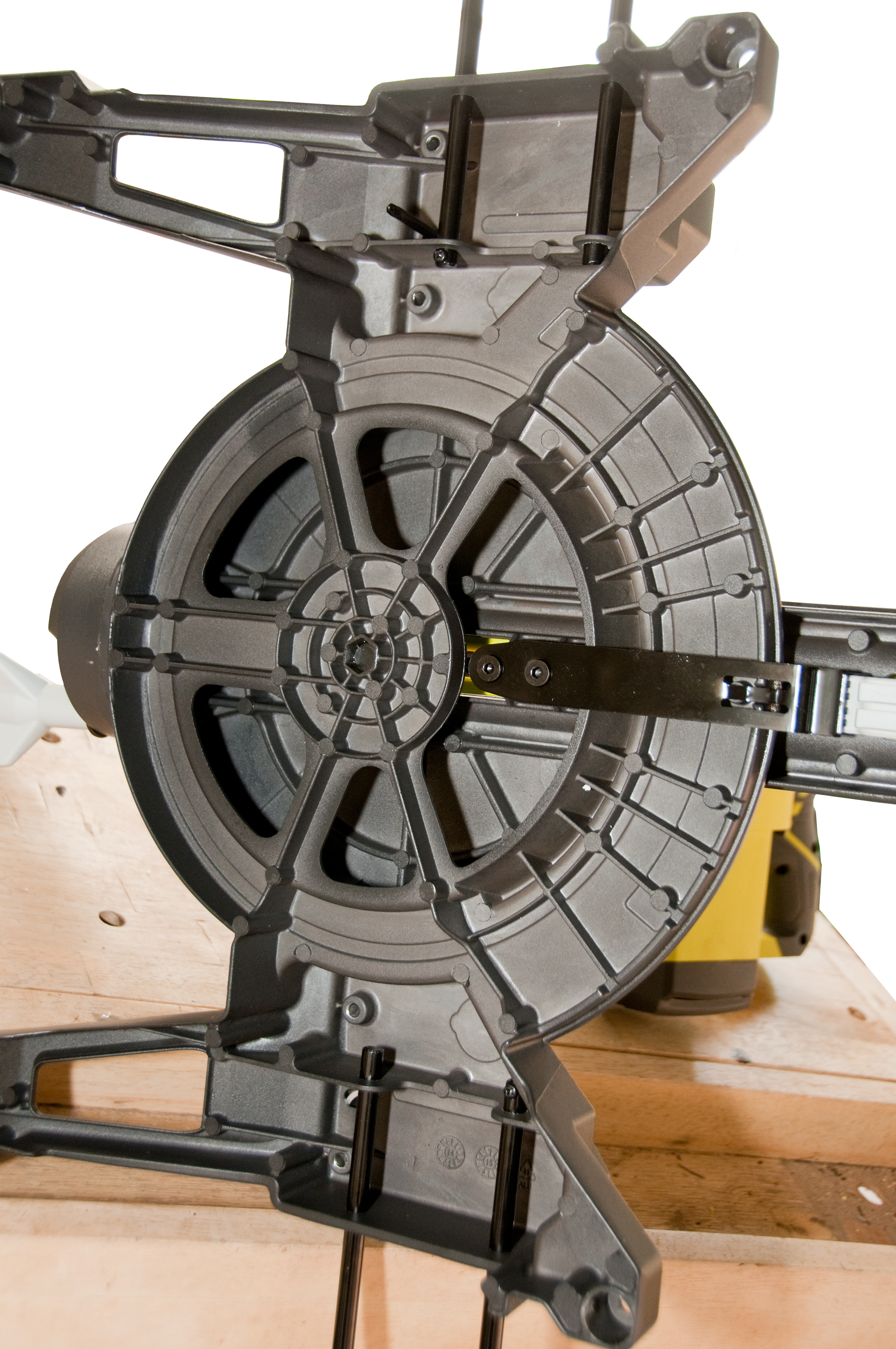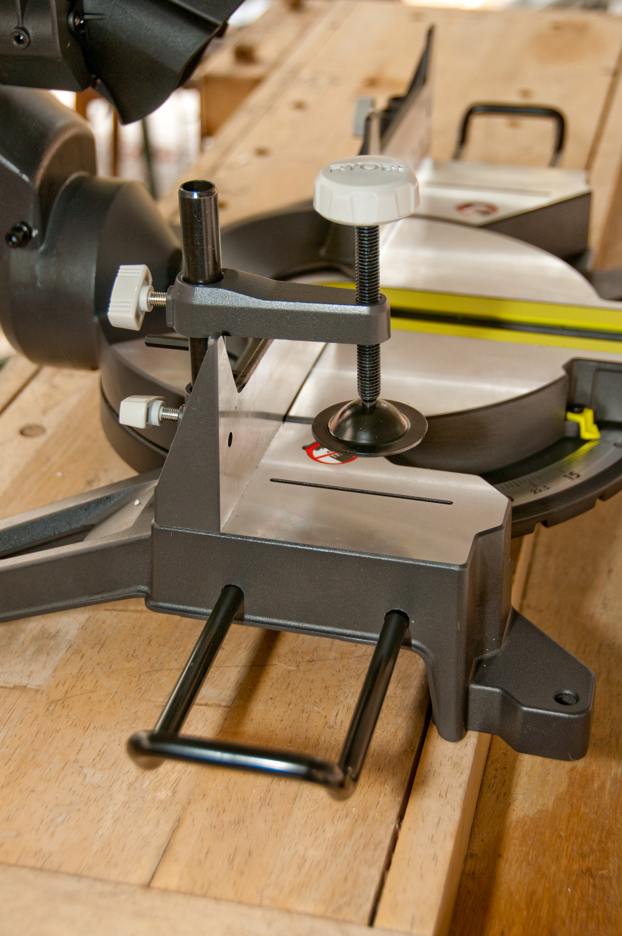 The Dewalt 364 has adjustable depth of cut (something missing from the Ryobi miter saw) so you cut the lumber you want and not cut the bench below if you use a sacrificial piece of wood below the wood being cut.
