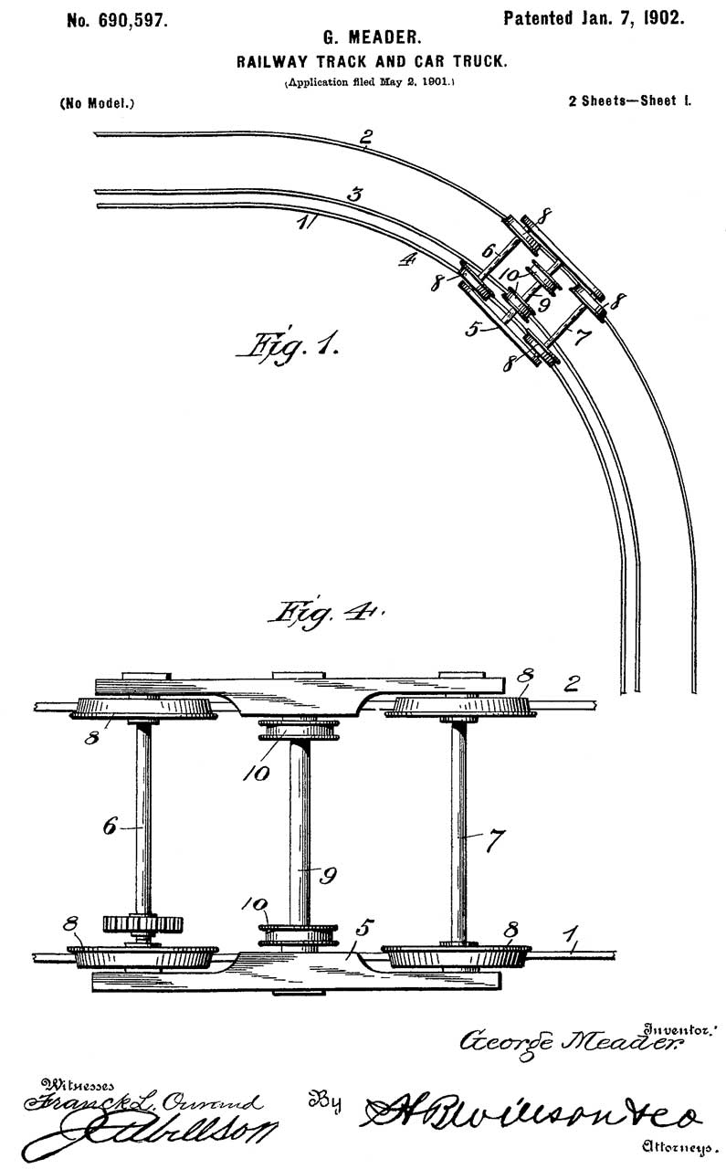 690597 Railway-track and car-truck, George Meader, 1902-01-07, - as late as 1902 still not understood.