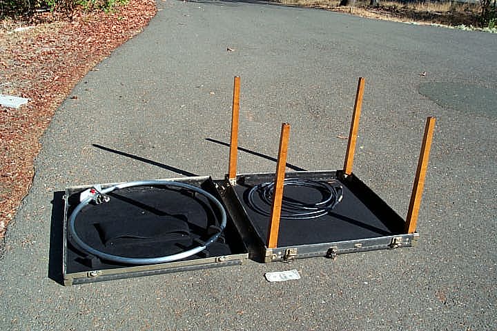 - CY-710 Transit Case 33x33x6" 35#, with AT-206 Large Loop, CG-444/U Cable, Transit case lid has fold out legs to make a table